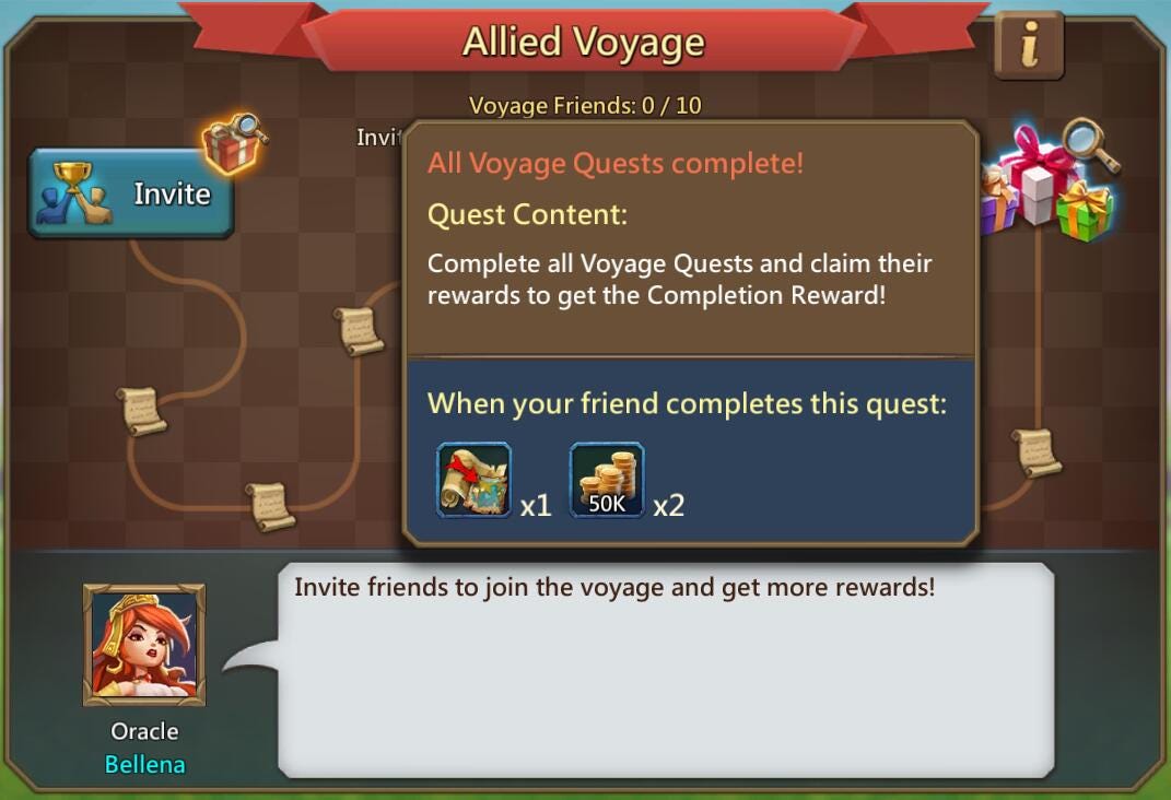 Bellena is the oracle of lords mobile. There are several different tiers of titles and a player can have multiple tiers of titles at once. Heroes and familiars can also be deployed to a camp. She serves mainly as the tutorial character guiding the player through most aspects of the game as they are introduced.