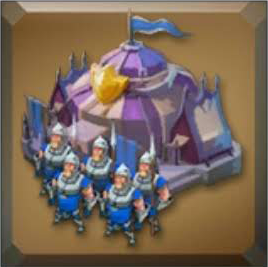 Membangun barak level 1 klik tombol yang disorot dan ditunjuk oleh anak panah biru.